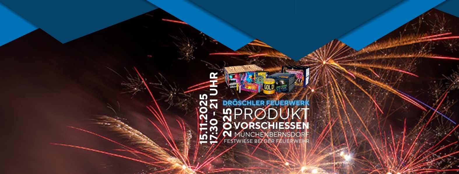 Feuerwerk & Pyrotechnik online kaufen bei Dröschler Feuerwerk Jena. Wir führen ausschließlich geprüftes Qualitätsfeuerwerk zu fairen Preisen – von bekannten Marken wie Funke, Argento, Riakeo, Tropic, Lesli und vielen mehr. Du erhältst bei uns nur Produkte, die uns als Pyrotechniker selbst überzeugen.